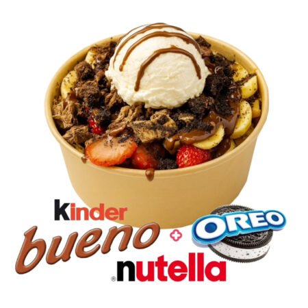 ¡Bowl magnífico! Tiene trozos de waffle, nutella, fresa, banano, tozos de brownie, galleta Oreo y…$25,000 -