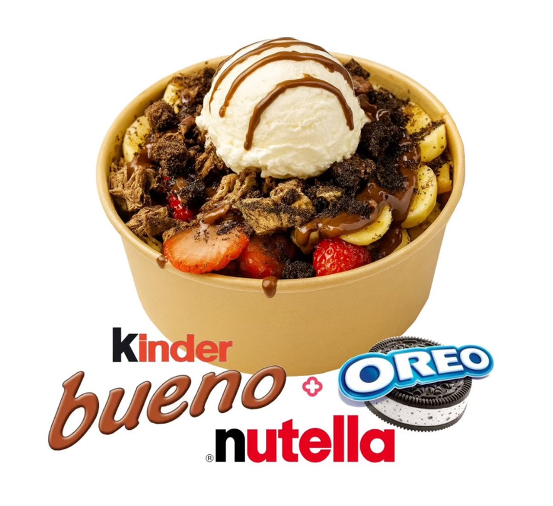 ¡Bowl obsesión es nuestro producto estrella! Tiene trozos de waffle, nutella, fresa, banano, chocolatina Kinder, galleta Oreo y bola de helado. Es delicioso, no dejes de probarlo!
